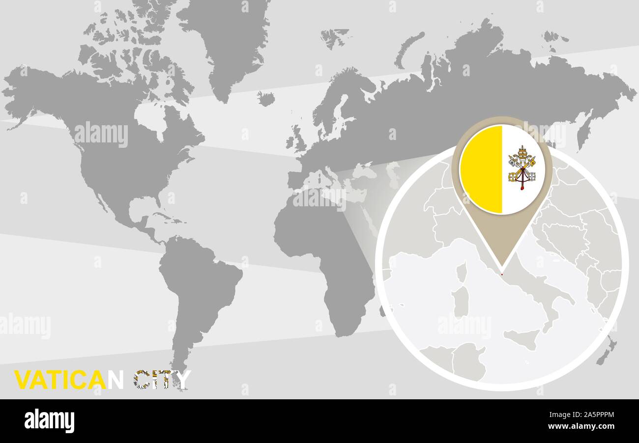 Mapa Mundial Con Magnifica Ciudad Vaticana La Bandera De La Ciudad Del Vaticano Y El Mapa Canstock