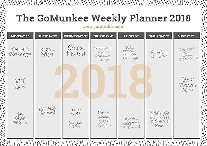 La Gomunkee Planificador Semanal 18 Calendario Organizador Planificador De Pared Para Familias Abuelos Parejas Estudiantes Las Pequenas Empresas Rotas Amazon Es Oficina Y Papeleria
