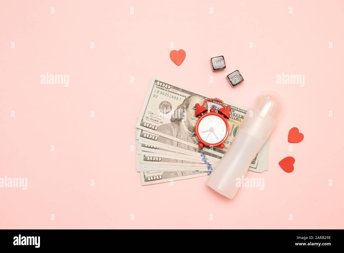 Mucho Dinero Alarma De Reloj Cubo Forma De Corazon Decoracion Y Lubricante En Un Fondo Rosa Amor Por El Concepto De Dinero Fotografia De Stock Alamy