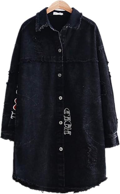 Mcszg Abrigos Largos De Gran Tamano Para Mujer Chaquetas Primavera Otono Tallas Grandes Agujero Coreano Suelto Femme Denim Lady Abrigos Ropa De Abrigo Negra Amazon Es Ropa Y Accesorios