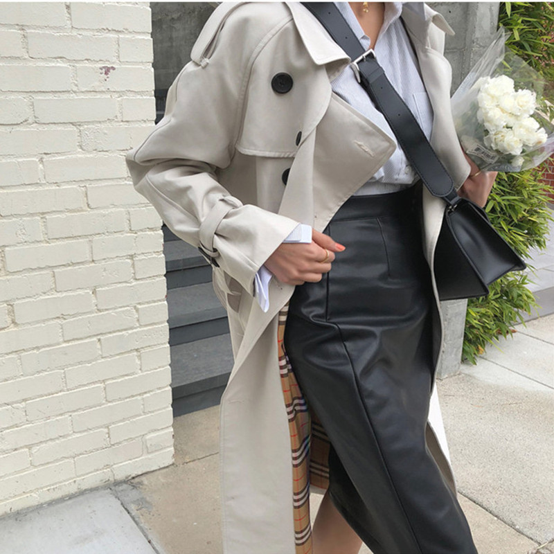 Q219 Coreano Para Mujer Largo Entallado Cazadora Chaqueta De Abrigo De Moda Para Damas Cazadora Windbreaker Fashion Fashion Trench Coat