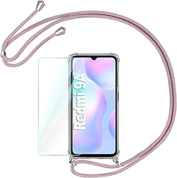 Aroyi Funda Con Cuerda Compatible Con Xiaomi Redmi 9a Y Protector Pantalla Carcasa Transparente Tpu Silicona Case Con Colgante Ajustable Correa De Cordon Compatible Con Xiaomi Redmi 9a Oro Rosa Amazon Es Electronica