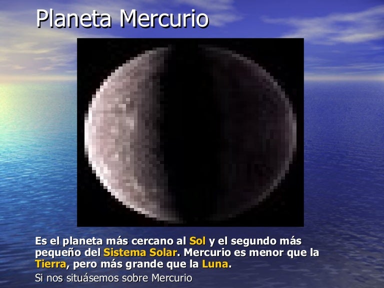 17abr Explora el tablero de Leticia López "Mercurio planeta" en Ver más ideas sobre mercurio planeta, planetas del sistema solar, planeta tierra para niños. Propiedades del planeta Mercurio Mercurio es un planeta sin lunas o satélites naturales Esto es en parte debido a su baja fuerza de gravedad, que es tan solo un 38% de la que experimentamos en la Tierra Su baja fuerza de gravedad explica también que Mercurio no tenga prácticamente atmósfera La atracción que ejerce el planeta es. Mercurio órbita alrededor del Sol cada días (año del planeta) Los estudios de radar del planeta muestran que gira sobre su eje una vez cada 58,7 días o cada dos terceras partes de su periodo orbital;.