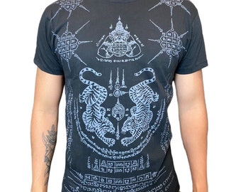 Sak Yant Yantra Work T Shirt Talisman Amulet Muay Thai Tattoo Tiger Size S Xl Ebay