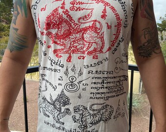 New Unisex Tiger Sak Yant 5 Lines Rahu Muay Thai Tattoo Tank Top Tee Yant Sua Mi Tiles Com