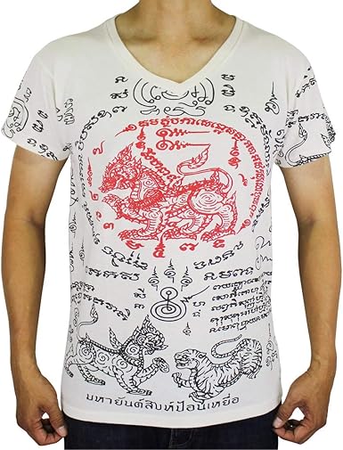 Work Thai Tattoo Sak Yant Tiger Muay Thai Amulet T Shirt White Wk06 Size Xl Amazon Com