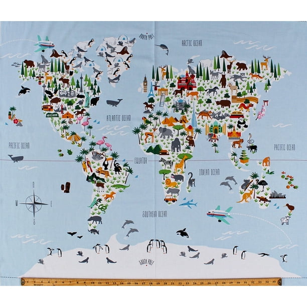 36 X 44 Panel Cute Animals Around The World Map Continents Oceans Wildlife Kids Blue Little Explorers Cotton Fabric Panel 42p 11 Walmart Com Walmart Com
