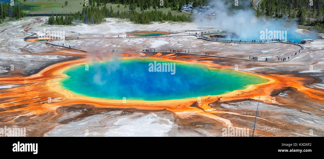 Grand Prismatic Spring, Yellowstone National Park, Wyoming Grand Prismatic Spring a hot spot to discover at least once in a lifetime On our second day at Yellowstone National Park, we ride in the direction of Grand Prismatic Spring and Old Faithful, two of the world’s bestknown natural gems We are so excited!. With its 112 meters wide, Grand Prismatic is incredibly large and known throughout the world for its rainbow colours, which reveal themselves by taking a little altitude. With its 112 meters wide, Grand Prismatic is incredibly large and known throughout the world for its rainbow colours, which reveal themselves by taking a little altitude.