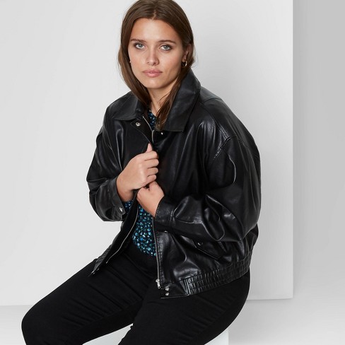 Women S Plus Size Faux Leather Bomber Jacket Wild Fable Black 1x Target