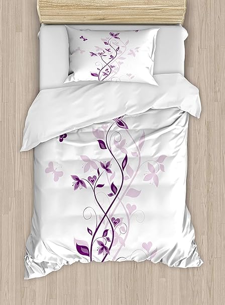 Juego De Funda Nordica Morada Tamano Gemelo Violeta De Arbol Lila Persianas Florece Con Un Grafico De Plantas Ornamentales De Mariposas Juego De Cama Decorativo De 2 Piezas Con 1 Funda De
