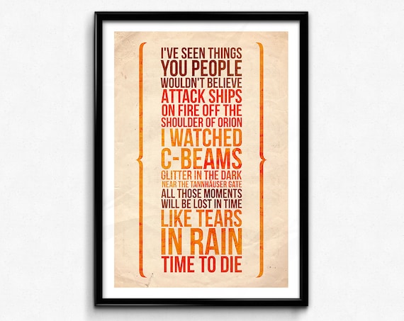 Blade Runner Movie Quote Tears In Rain Bladerunner Poster Etsy
