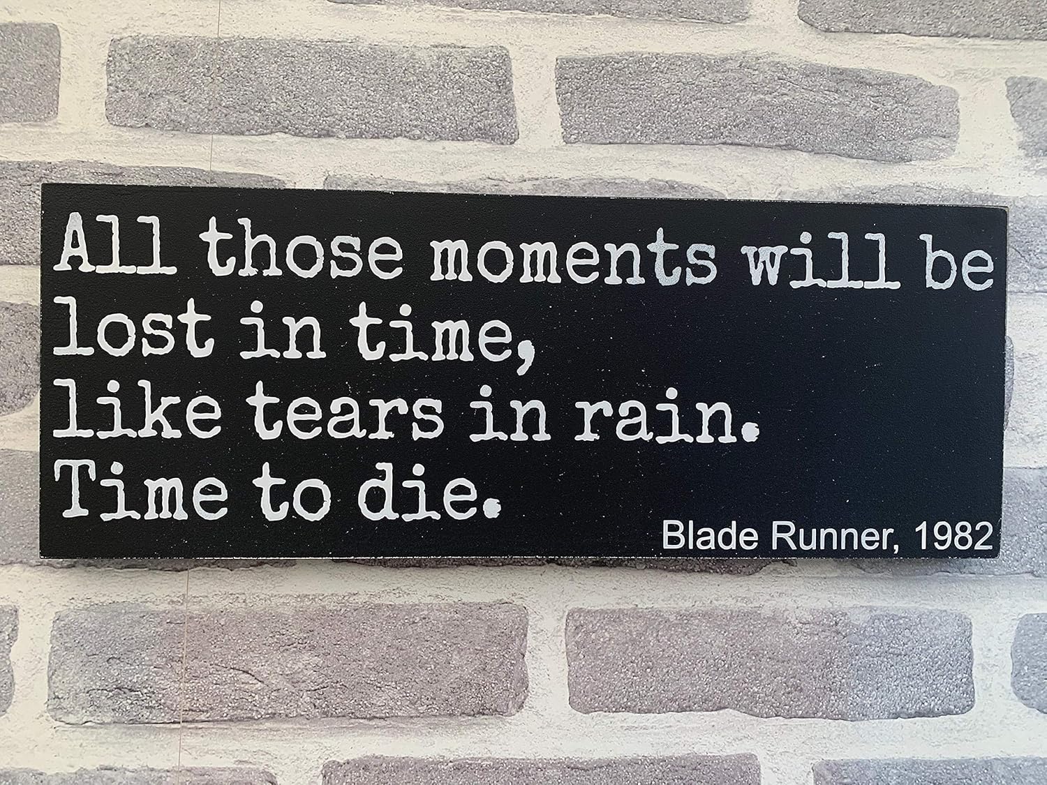 Unknow All Those Moments Will Be Lost In Time Like Tears In The Rain Blade Runner 19 Movie Quote Wooden Wall Sign Amazon Co Uk Kitchen Home
