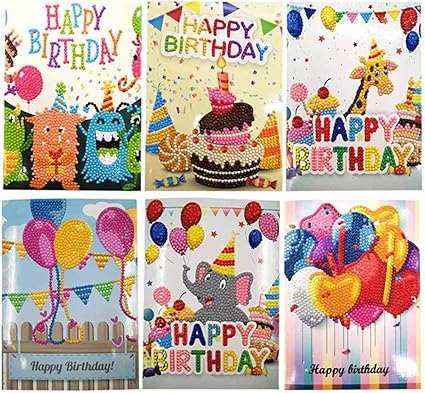 Hellocreate Tarjetas De Papel Con Pintura De Diamantes Para Manualidades Con Dibujos Animados Tarjetas De Felicitacion De Cumpleanos Amazon Es Oficina Y Papeleria