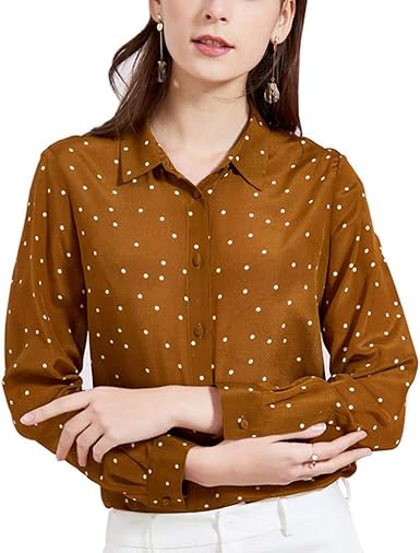 Amazon Com Lilysilk Camisas De Seda Para Mujer Botones De Manga Larga Diseno De Lunares Clothing