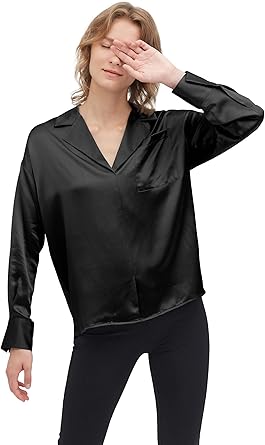 Amazon Com Lilysilk 100 Camisas De Seda Para Mujer Sin Solapa De Seda Cruda De Manga Larga Charmeuse Suave Fresco Clothing