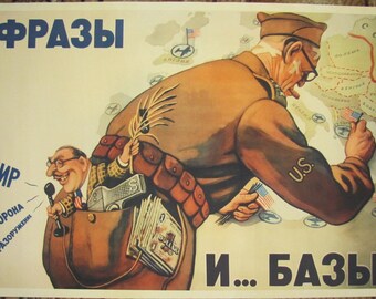 Anti Usa Army Caricature Huge Impressive Ussr Soviet Cold War Propaganda Poster Ebay