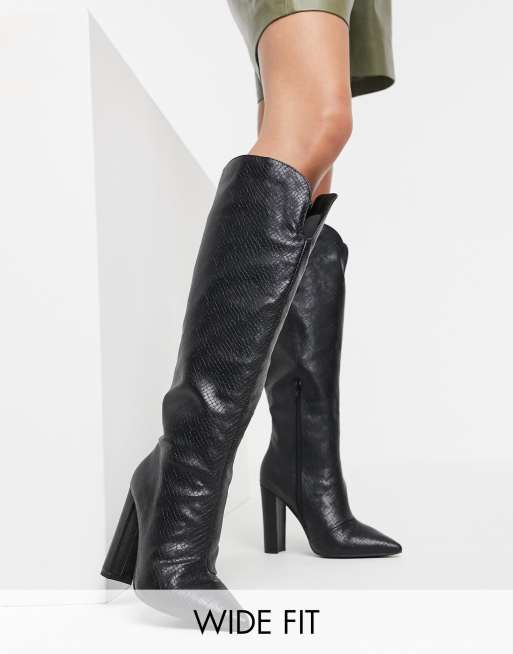 Public Desire Wide Fit Slow Knee High Boots In Black Snake Asos
