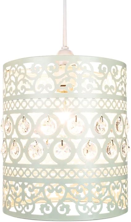 Dcqao Lamparas De Techo Estilo Shabby Chic Crema Tradicional Y Adornada Colgante De Tambor Easy Fit Lamparas Colgantes De Comedor Pantalla Con Gotitas De Acrilico Transparente Lamparas Colgantes Amazon Es Hogar