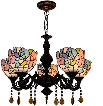 Gxwlwxms Lampara De Techo Estilo Tiffany Easy Lampara Colgante De Techo De Vidrio Manchado For Sala De Estar Comedor Dormitorio Barra De Estudio Lampara De 5 Cabezas Amazon Es Iluminacion