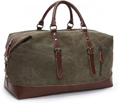 Bsdz Bolsa De Viaje Lona Para Mujeres Y Hombres Bolsa Fin De Semana Grande Vintage Bolsa De Hombro De Cuero Portatil Hombres Bandolera Bolsa Deporte Ejercito Verde Amazon Es Equipaje