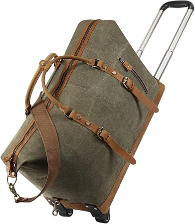 Amazon Com Bolso De Viaje Con Ruedas De Lona Para Equipaje De Piel