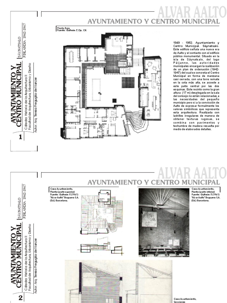 Ayuntamiento de saynatsalo planos. Con el objetivo de mostrar la obra urbana de lto frente a la ortodoxia moderna, se ha elegido el plan director de Säynätsalo como muestra representativa de su trabajo Durante los años en los que se dedica al plan de Säynätsalo (), lto abarca tanto la escala regional plan director como la arquitectónica. Plano de ordenacin Urbana de Syntsalo, 1945, Alvar lto invitado en 1945 por H Brommels lto defini el lugar de implantacin del edificio del ayuntamiento, en una suave colina en la extremidad de una plaza triangular delimitada por dos calles que parten de la calle principal que da acceso a la isla. Desde Delirious New Blog “En 1949, el empresario Enso Gutzeit convocó un concurso para la realización del ayuntamiento de Säynätsalo (), el cual ganó Alvar lto El proyecto está influido por un viaje que el arquitecto realizó a Italia El edificio se ubica según los cuatro puntos cardinales en un terreno ligeramente inclinado hacia el sur.
