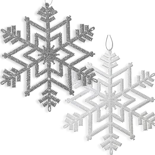 Amazon Com Copos De Nieve Grandes Con Purpurina Juego De 12 Copos De Nieve De Colores Variados Blancos Plateados Con Purpurina Aproximadamente 9 1 2 D Brillantes Copos De Nieve Decoraciones