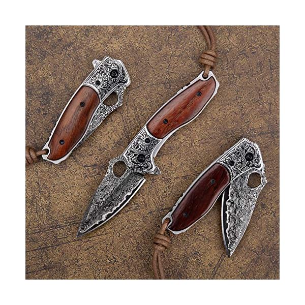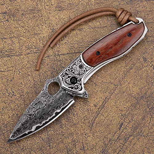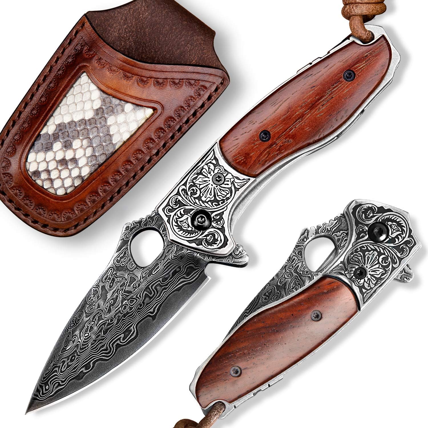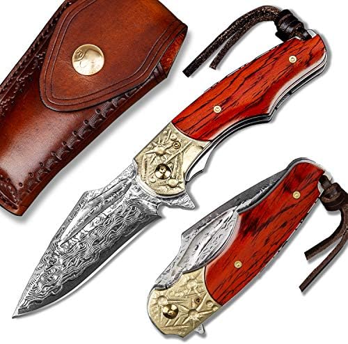 Amazon Com Spirit Deed Edc Pocket Knife For Men 2 5in Japanese Handmade Vg10 Damascus Steel Rosewood Handle Liner Lock Leather Sheath Folding Knives For Camping And Hunting Rosewood 2 8 Sports Outdoors