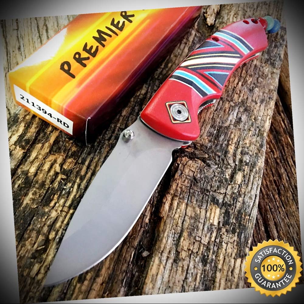 Folding Pocket Knife Silver Blade Red Indian Style Tribal Spirit Edc Outdoor For Camping Hunting Cosplay Amazon Com