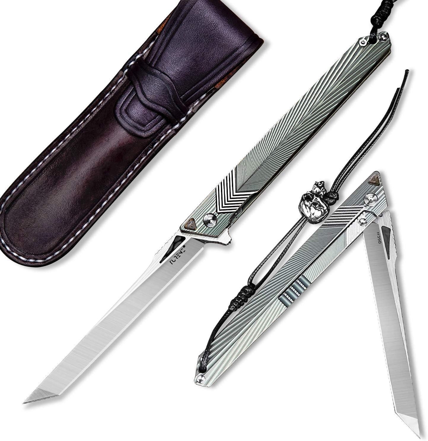 Spirit Deed Bohler M390 Steel Frame Lock Edc Folding Pocket Knife With Sheath For Men And Women Survival 4in Tanto Blade Titanium Handle Japanese Style Knives For Camping And Hunting