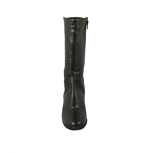 Botas Tacon Media Cana Piel Negro Pera Limonera