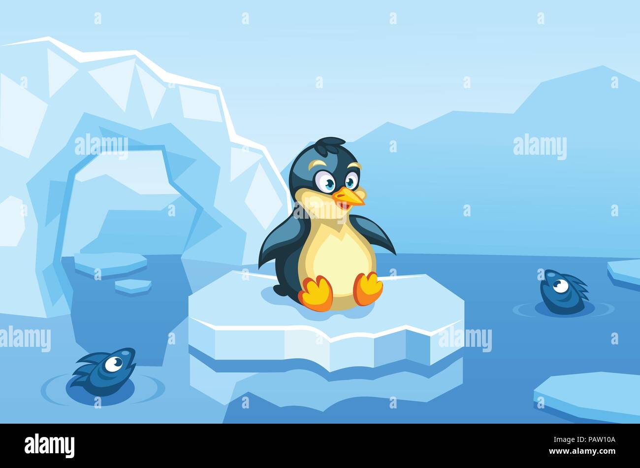 Ilustracion De Un Pinguino En Un Vector Del Artico Fondo Con Tempanos De Hielo Icebergs El Agua Y Los Peces Imagen Vector De Stock Alamy