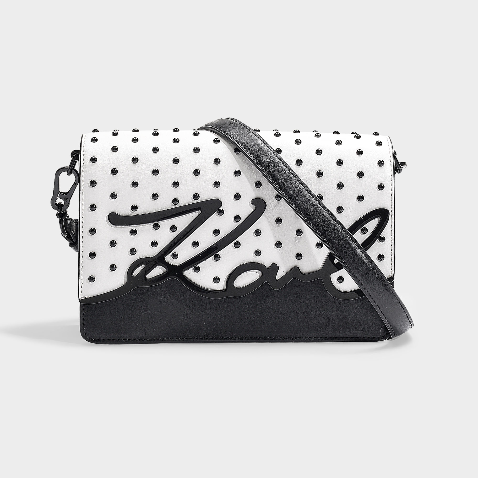 Karl Lagerfeld K Signature Special Studs Shoulder Bag In Black And White Calfskin Modesens