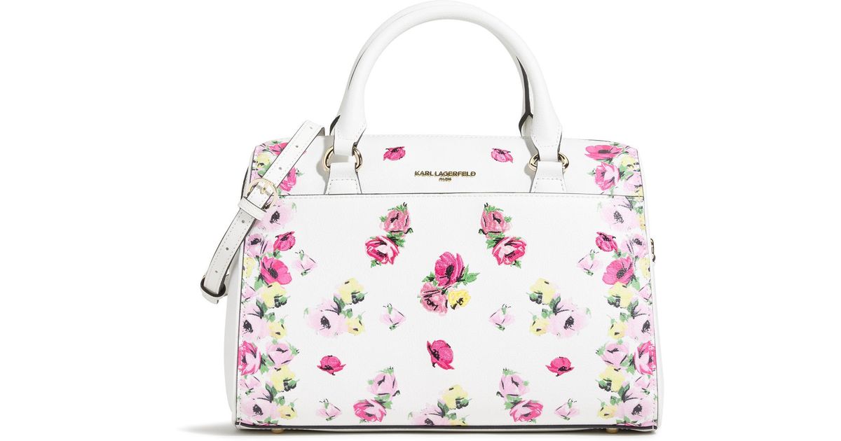 Karl Lagerfeld Paris Willow Floral Printed Hermine Satchel White Unsized Item Long Strap Purse Leather Satchel Bag Satchel Handbags