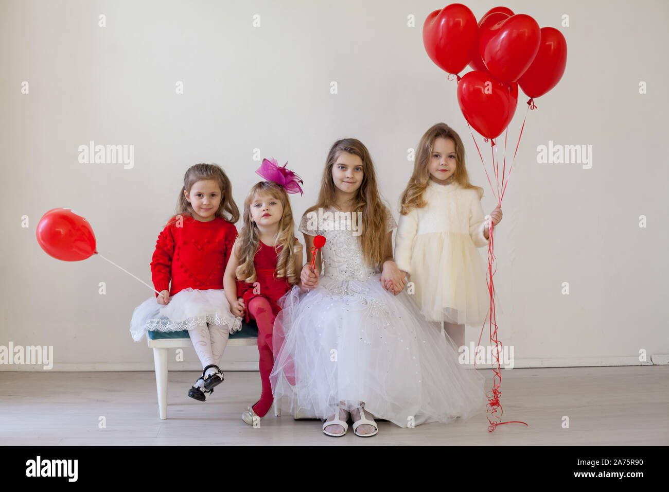 Chicas Guapas En Rojo Y Blanco Vestidos De Fiesta De Cumpleanos Fotografia De Stock Alamy