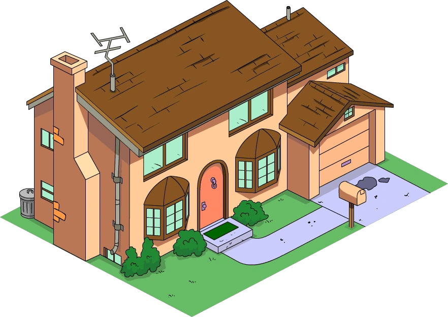 Design The Simpsons house is a light pink (later in the series, the house becomes light brown) twostory detached house with an attached garage, basement, and loft A suburban tract house, the building is at least 50 feet (15 m) wide. Casa de los Simpsones el primer edificio que consigue el jugador enThe Simpsons Tapped Outy se desbloqueaLisa Coste135 dólares Nivel1 PersonajesLisa Simpson Recompensa3 dólares y 1 XP Recogida de dinero45 segundos Tiempo en construirse6 segundos Todos los componentes de la colecciónLos Simpson tienen una misión ahí, menos Bart Añadir una imagen a esta galería. La casa de los Simpson tiene una sala de juegos que se encuentra al lado de la cocina El pasillo en el lado derecho, al lado de la nevera, conduce a la misteriosa habitación, que tiene un.