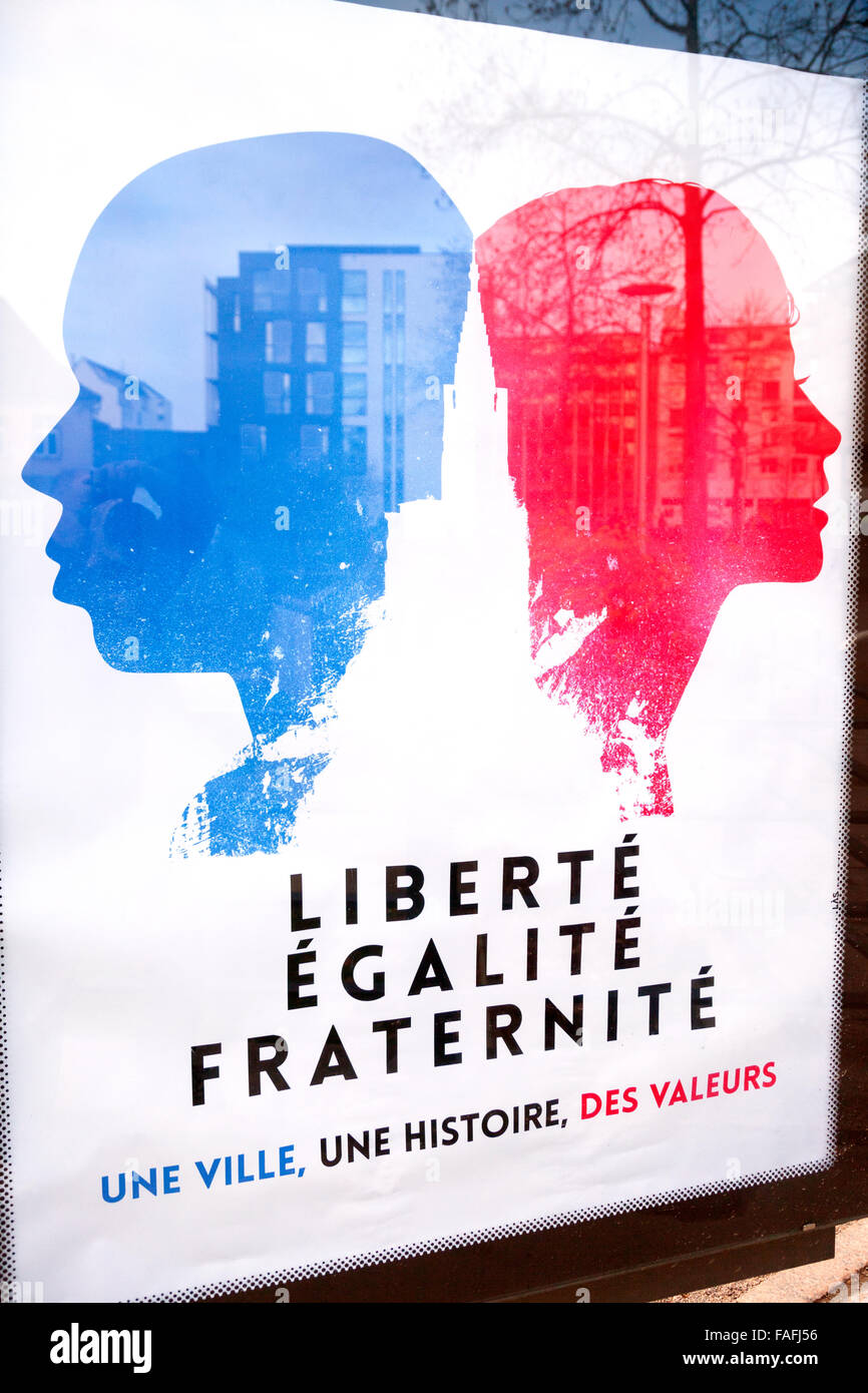 Cartel En Francia Para Los Franceses Lema Nacional Liberte Egalite Fraternite Fotografia De Stock Alamy