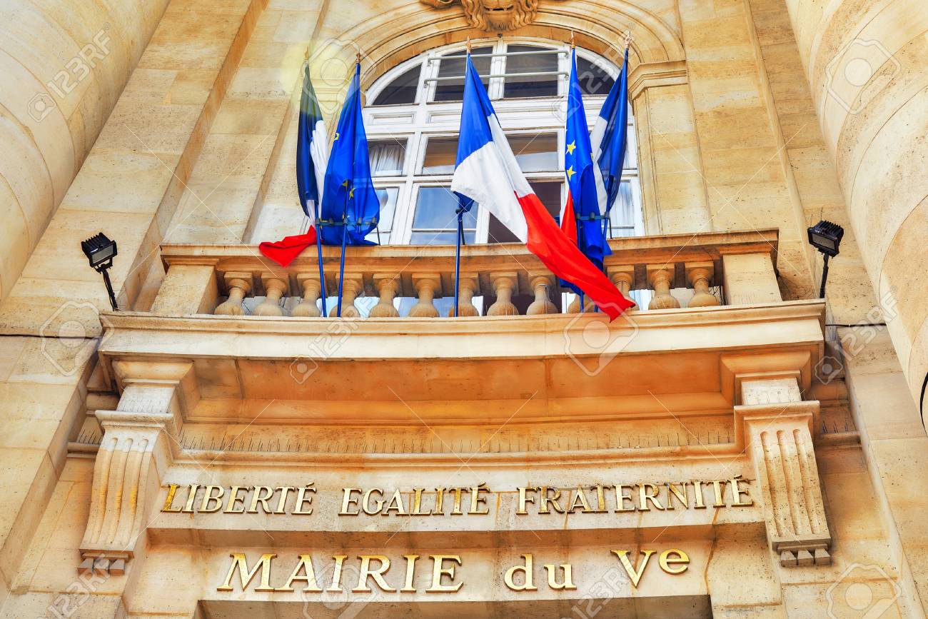 Liberte Egalite Fraternite Lema En La Fachada De Un Ayuntamiento Paris Francia Fotografia De Stock Alamy