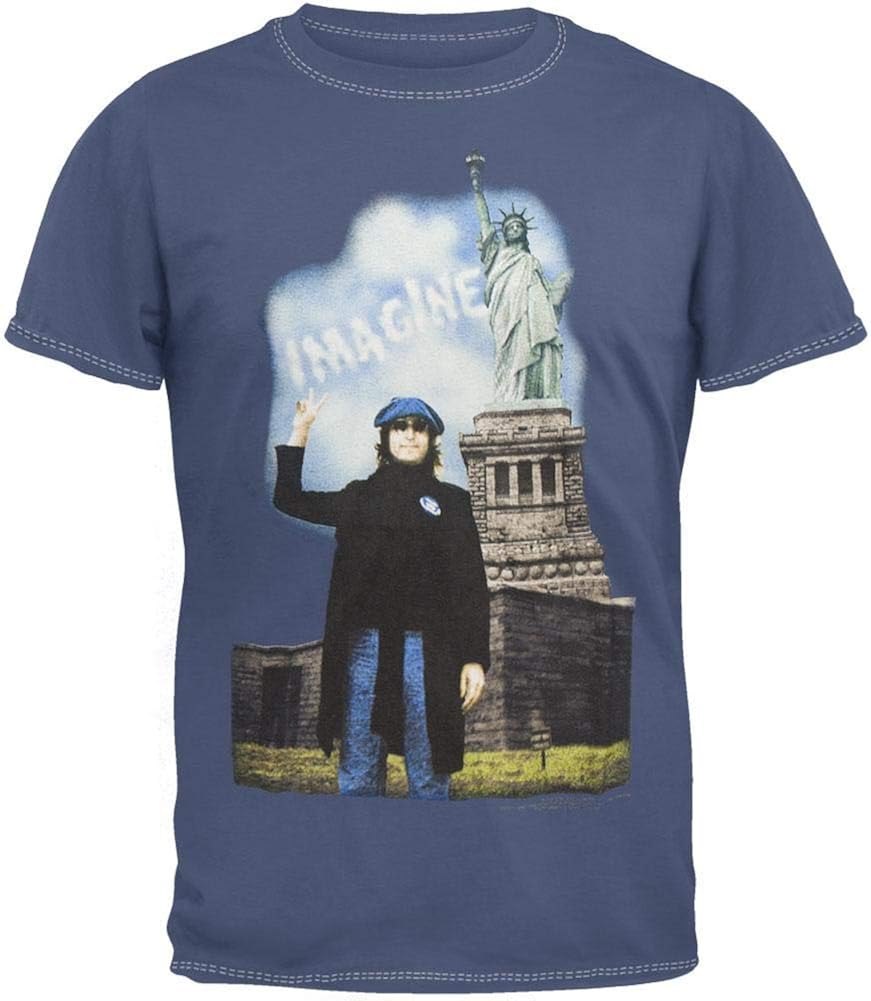 Free shipping for many products!. John Lennon flashes a peace sign in front of the Statue of Liberty in a distressed Imagine Peace logo graphic on the front of this grey, 100% soft cotton tshirt With a bold Lennon signature running down the center in black, this is an awesome tee for any fan of New York's favorite adopted son. A 1974 Gruen photo of Lennon flashing a peace sign with the Statue of Liberty as his backdrop remains among the most iconic photos of the brilliant songsmith Lennon found his comfort zone quickly.