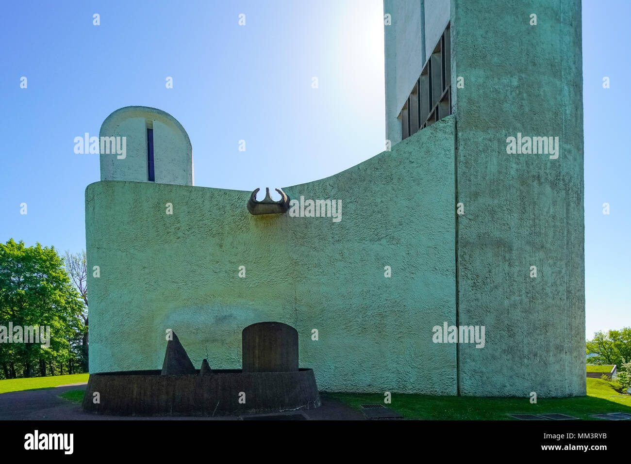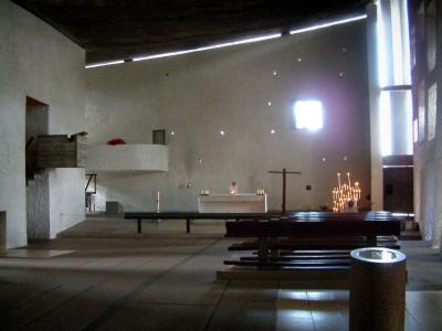 Chapelle Dame du Haut, is a Roman Catholic chapel located in the beautiful French countryside surrounding the small town of Ronchamp It is situated near Belfort, which is in Eastern France Built in 1955, it is one of the fine creations of the FrancoSwiss architect, Le Corbusier. Die Kapelle Notre Dame du Haut von Ronchamp (französisch Chapelle NotreDameduHaut de Ronchamp, deutsch Unsere Liebe Frau von der Höhe) ist eine der Jungfrau Maria geweihte katholische Wallfahrtskirche in der französischen Gemeinde Ronchamp bei Belfort Der 1950 bis 1955 nach Plänen des französischschweizerischen Architekten Le Corbusier errichtete Kirchenbau zählt zu den. Ronchamp is a little over an hour's drive west of BaselMulhouse, the airport near the French/Swiss/German border From Mulhouse follow the A36 southwest to Belfort, then the N19 west to Ronchamp A steep windy road to the North is signposted to the chapel from the center of Ronchamp village.