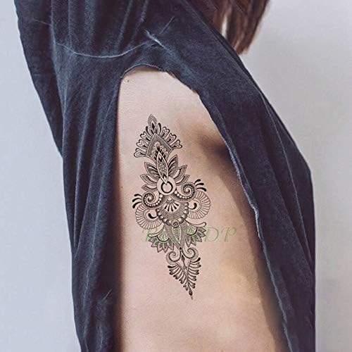9 Hojas De Henna Negra Mandala Tatuaje Temporal Para Mujeres Flor Brazo Tatoo Pegatina Ebay