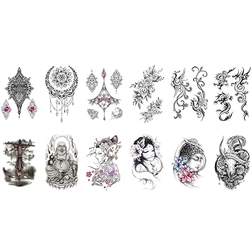 Amazon Com Tafly Tatuaje Cuerpo Arte Mandala Tatuaje Mujeres Nina Flor Tatuaje Tatuaje Temporal 12 Hojas Beauty