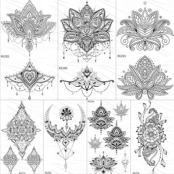 Amazon Com 5 X Mandala Tatuaje De Flor De Loto Mandala Indio Tatuaje Temporal Beauty