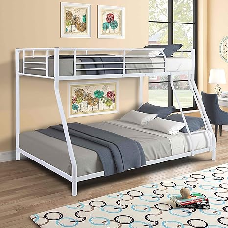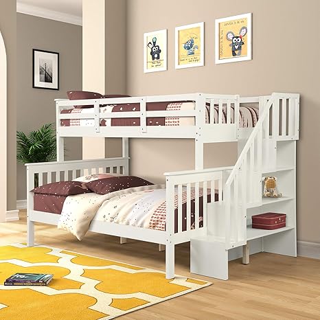 Amazon Com Cama Doble Sobre Dos Literas Rockjame De Diseno De Ahorro De Espacio Para Dormitorio Con Litera De Madera Maciza Escalera Y Barra De Seguridad Para Ninos Y Ninas Blanco Kitchen