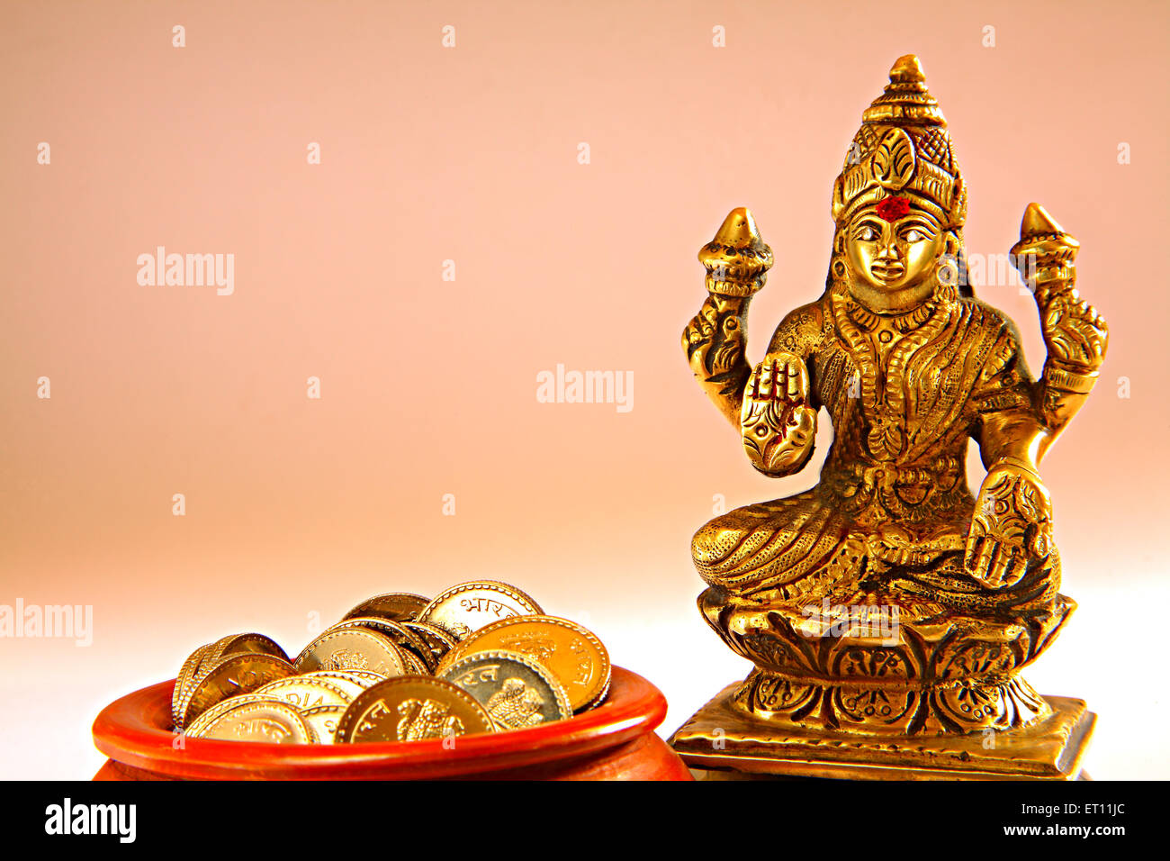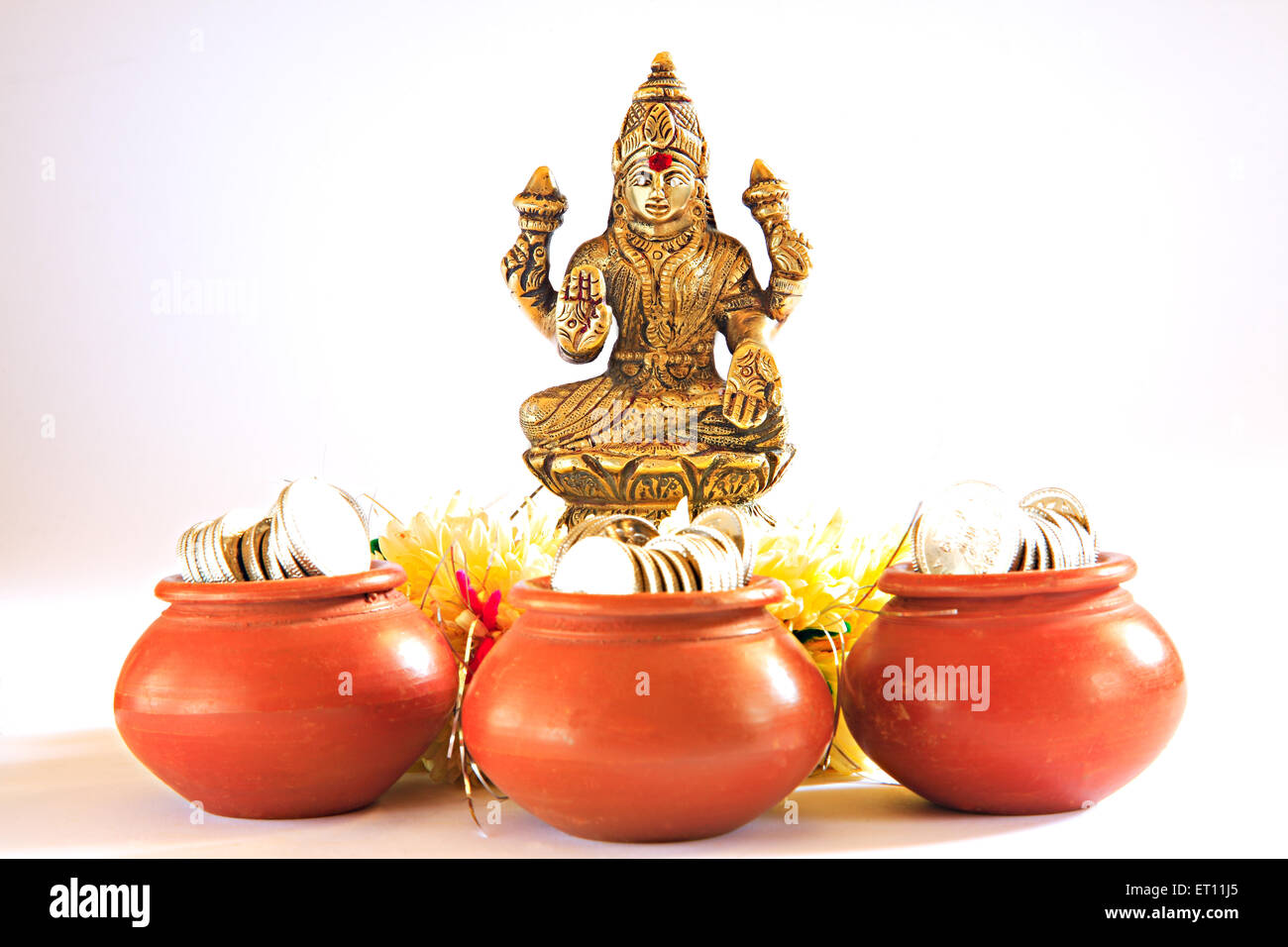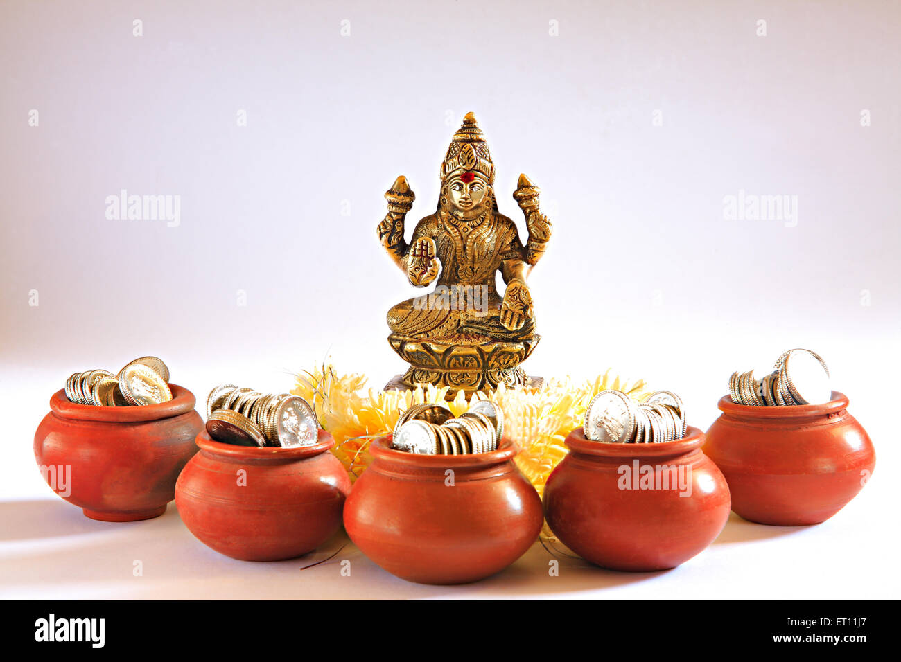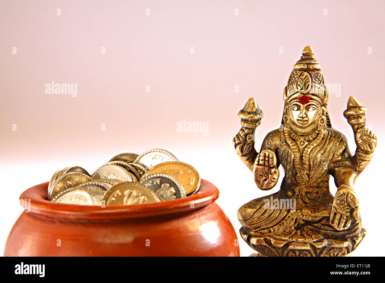 Diosa India Shree Lakshmi De La Diosa De La Fortuna Lustre Y Riqueza Olla Con Monedas India Fotografia De Stock Alamy