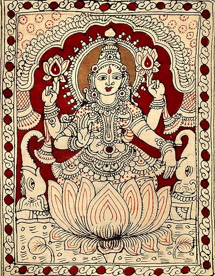 Exotic India Lakshmi La Diosa De La Fortuna Pintura Kalamkari Sobre Algodon Artista M Viswanath Reddy Andhr Amazon Es Hogar
