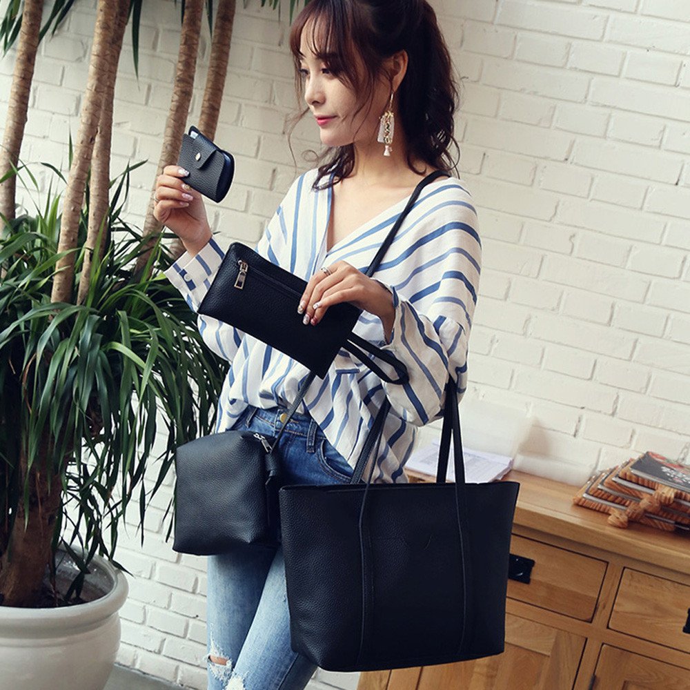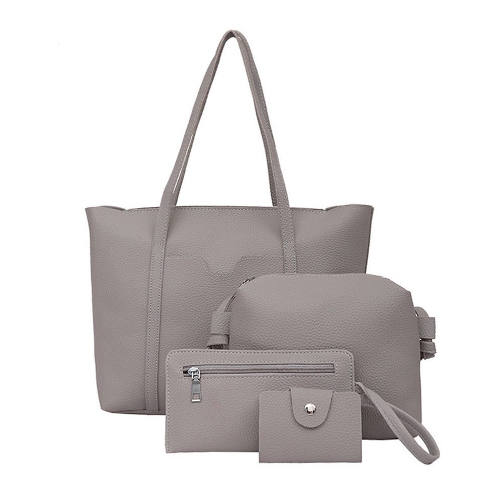 Bolsos Bandolera De Mujer De Cuero De Pu Bolsos Grandes Multifuncional De Moda Bolsos Conjunto 4pcs 1pc Bolso De Hombro Gris 1pc Paquete De Tarjetas 1pc Embrague 1pc Bandolera Bolsos Bandolera