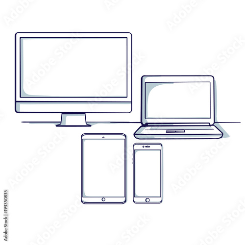 Set Of Different Computer And Mobile Device Desktop Tablet Laptop Mobile Phone Isolated Object Hand Drawn Doodle Cartoon Vector Illustration Buy This Stock Vector And Explore Similar Vectors At Adobe Stock