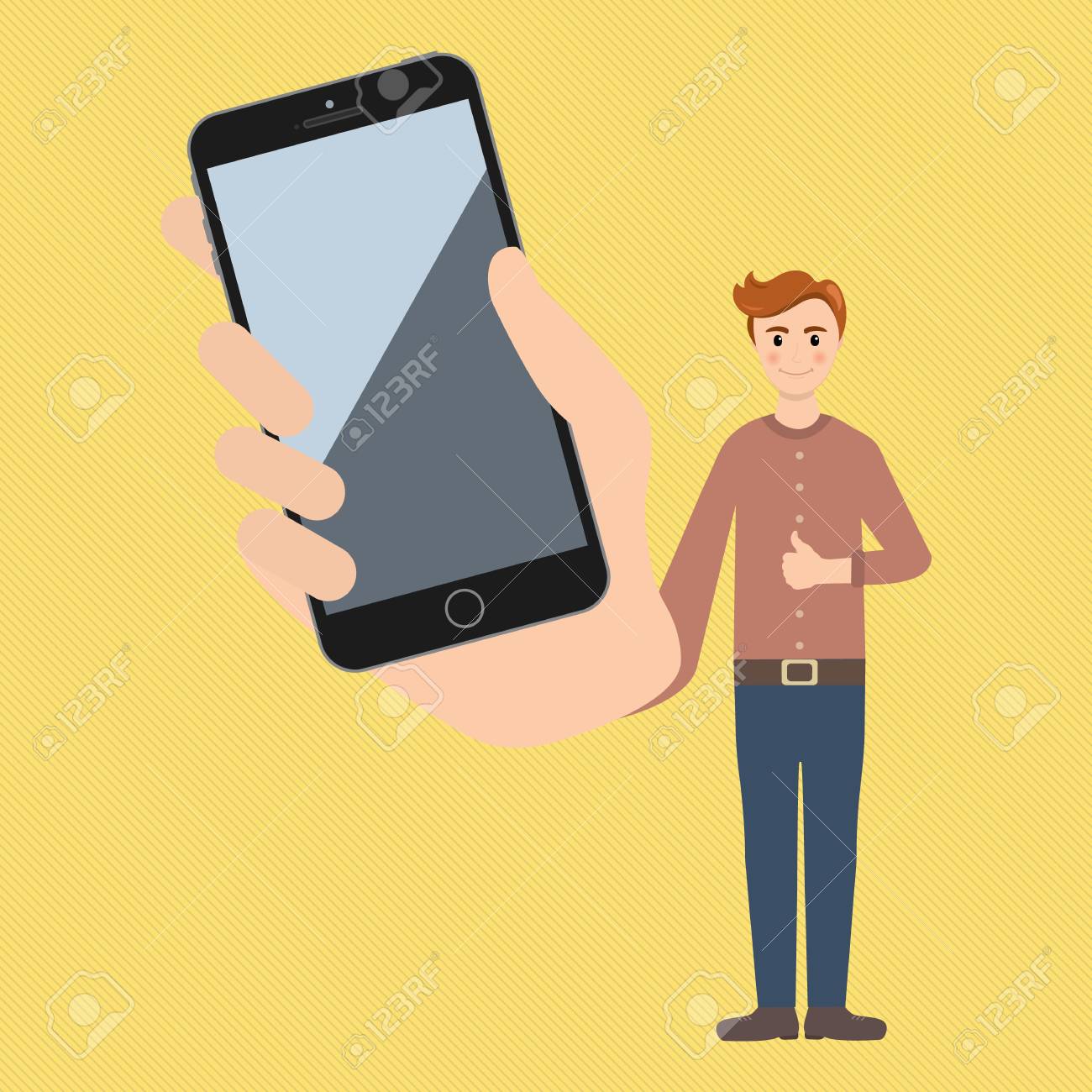 Handsome Man Holding Smart Phone And Showing Man Presentation Royalty Free Cliparts Vectors And Stock Illustration Image