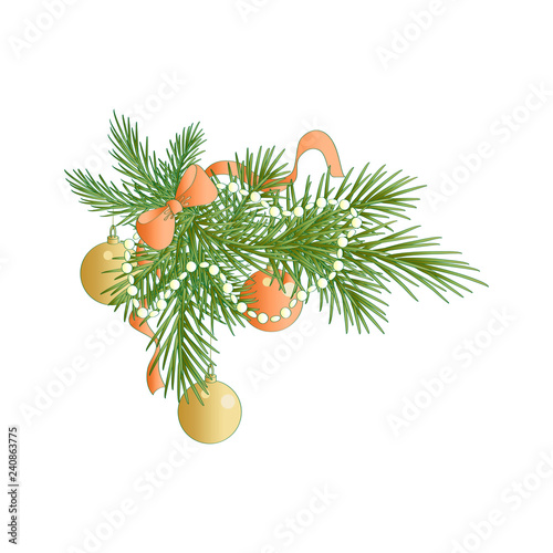 Christmas Tree Branch With A Bead Garland And Christmas Tree Decorations Vector Illustration Buy This Stock Vector And Explore Similar Vectors At Adobe Stock Adobe Stock
